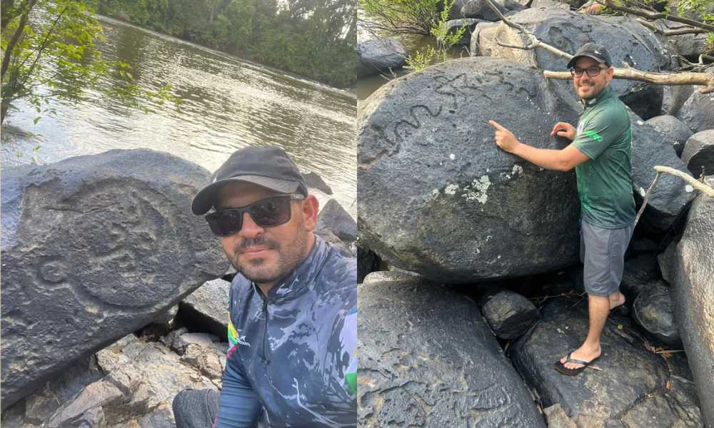 Durante um passeio de caiaque, um pescador encontrou cerca de 30 gravuras rupestres às margens do Rio Jacapó, no sul do estado de Roraima.